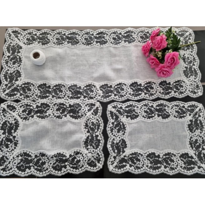 Set 3 centrini con ricamo Rebrode' Francese puro lino bellavia ricami