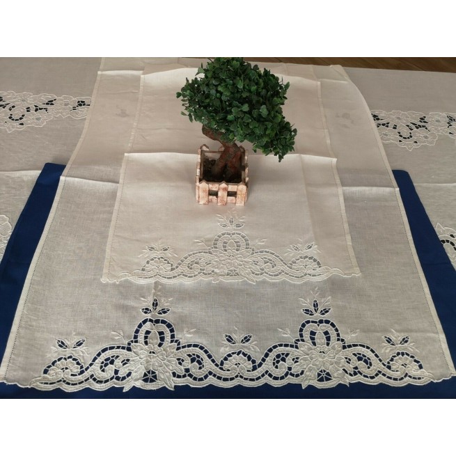 Ricchissimi asciugamani Bellavia in lino 100% con ricamo Intaglio e punto pieno a mano.