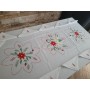 Ricca tovaglia Natalizia x 12 (comprensiva di 12 tovaglioli in lino 100%) in puro lino 100% con ricamo Punto pieno interamente a mano.